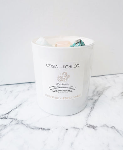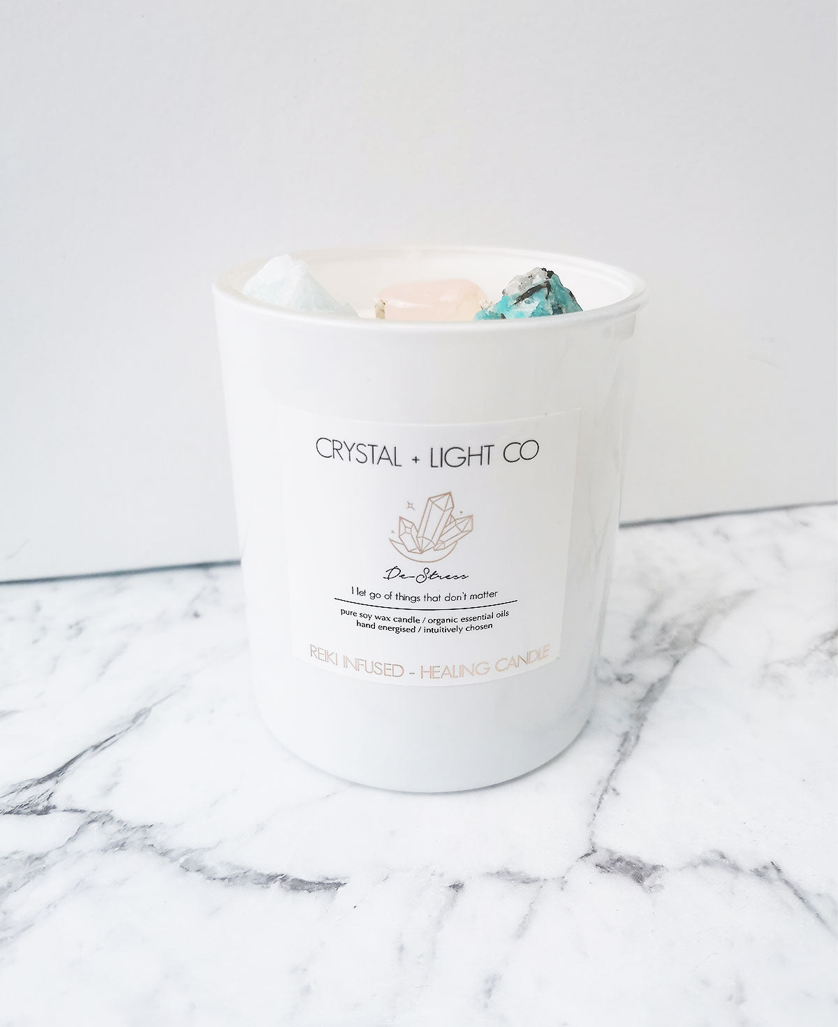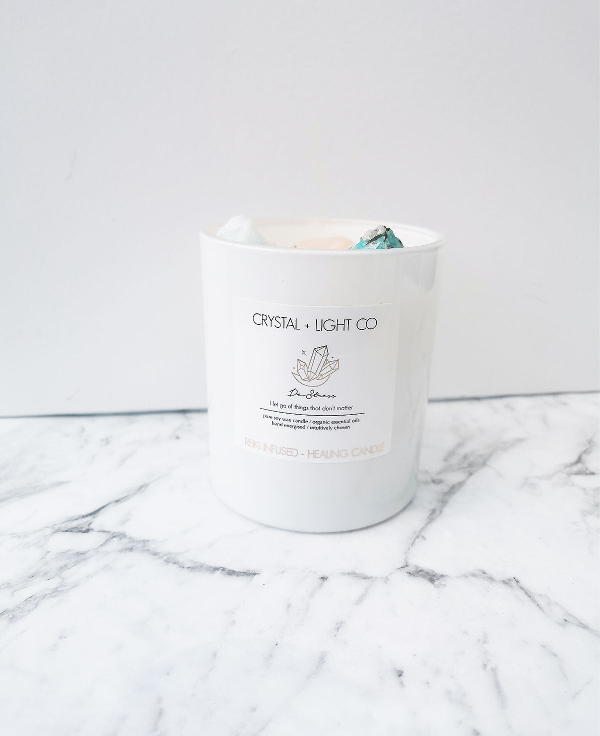 Unwind and reclaim your calm with our Destress Candle, a handcrafted, Reiki-infused masterpiece designed to melt away tension and restore your peace of mind. Expertly blended with soothing essential oils, each candle is created to help you relax, recharge, and find balance in the chaos of daily life. The synergy of aromatherapy and Reiki energy works together to bring you deep relaxation and clarity, allowing you to escape stress and embrace serenity. Light this candle whenever you need a moment of calm, and let its healing energy wash over you—because you deserve to feel centred, peaceful, and at ease.